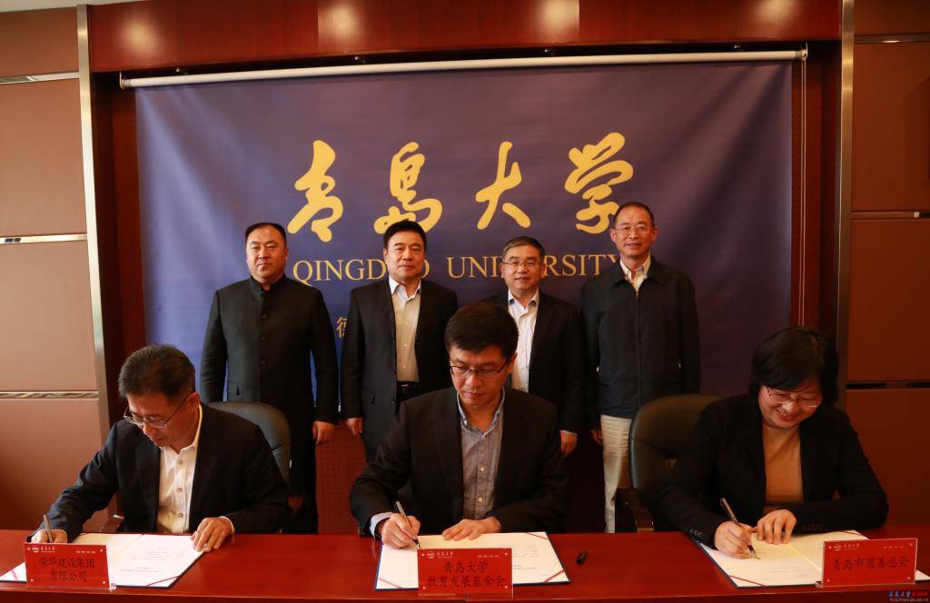 新聞網訊 11月5日上午,榮華建設集團有限公司捐贈暨簽約儀式在學校辦公樓第五會議室舉行。青島市慈善總會王偉會長、非公經濟慈善分會王吉春會長、青島市慈善總會專職副秘書長盛梅、榮華建設集團孫涌董事長、劉世海副總裁;校黨委書記胡金焱,黨委常委、副校長于紅波等出席。