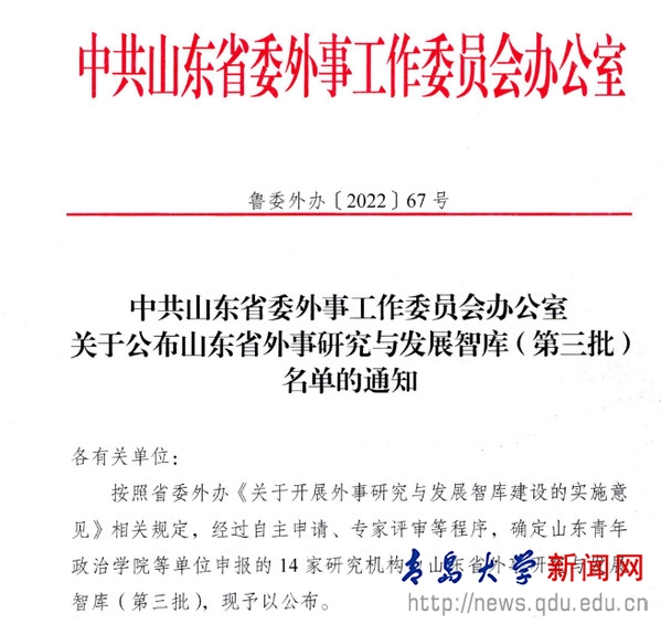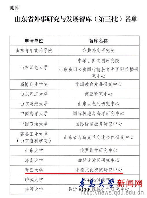 我校“中德文化交流研究中心”入選山東省外事研究與發(fā)展智庫(kù)
