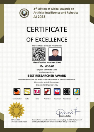 該研究是在新冠疫情背景下針對疫苗供應鏈管理協同方面展開,論文探討了人工智能技術和區塊鏈技術在疫苗供應鏈運營中的適用性和有效性。在經過專家提名和多輪評審后,國際學術組織ScienceFather決定授予高野2023年“最佳研究者獎” (3rd Edition of Global Awards on Artificial Intelligence and Robotics AI 2023,Best Researcher Award,ScienceFather)。“Global Artificial Intelligence”是為鼓勵和表彰世界各地的研究人員和研究組織在其專業領域的重大貢獻和成就而設立的,所有國籍的研究人員和學者都有資格獲得“ScienceFather Artificial Intelligence Awards”。對被提名人的評判標準是:過去的成就、卓越的研究和杰出的學術成就(https://artificial-intelligence-conferences.sciencefather.com/awards/)。2020-2022年,我國獲得此項獎項的學者分別來自浙江大學、上海交通大學、四川大學、吉林大學、華中農業大學等高校。