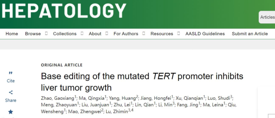 新聞網訊 近日,我校腫瘤精準醫學研究院在國際著名肝病學期刊HEPATOLOGY雜志(IF=13.5)上發表了題為“Base editing of the mutated TERT promoter inhibits liver tumor growth”的研究論文。青島大學為該文第一作者單位和共通訊單位,腫瘤研究院教師趙高翔為第一作者,馬清霞博士為并列第一作者,呂志民教授、邱文生教授和毛崢偉教授為共同通訊作者。該工作得到青島市高層次團隊專項、科技部重點研發計劃、國家自然科學基金、中國博士后基金等科研項目的資助。