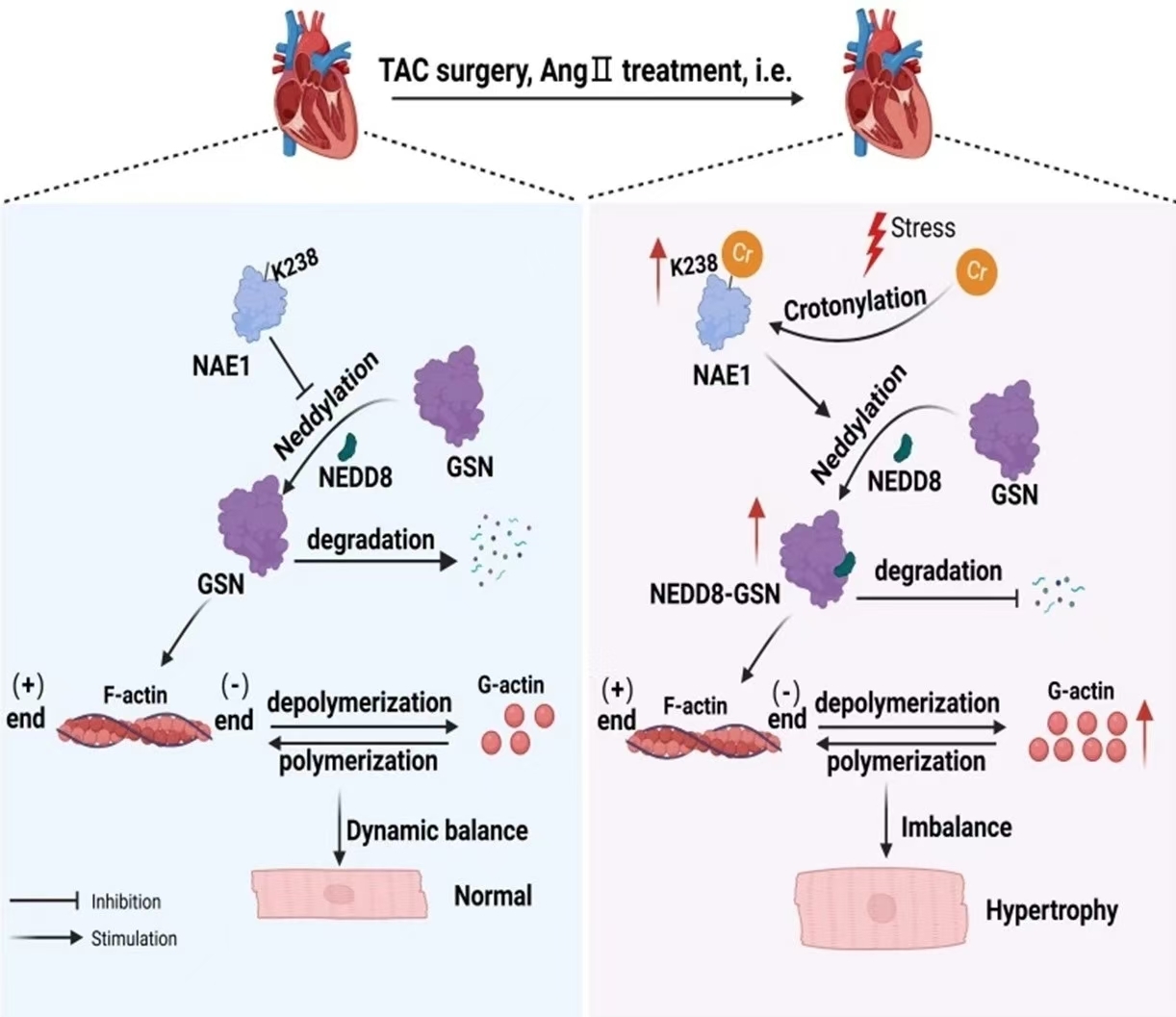 該研究揭示了NAE1的巴豆酰化修飾在病理性心肌肥厚中的作用。NAE1 K238的巴豆酰化修飾可通過調控GSN的類泛素化修飾影響其蛋白的穩定性及表達,進而通過影響肌動蛋白的解聚活性及細胞骨架的重塑參與病理性心肌肥厚的進展,為心力衰竭的治療提供新的思路與潛在靶點。