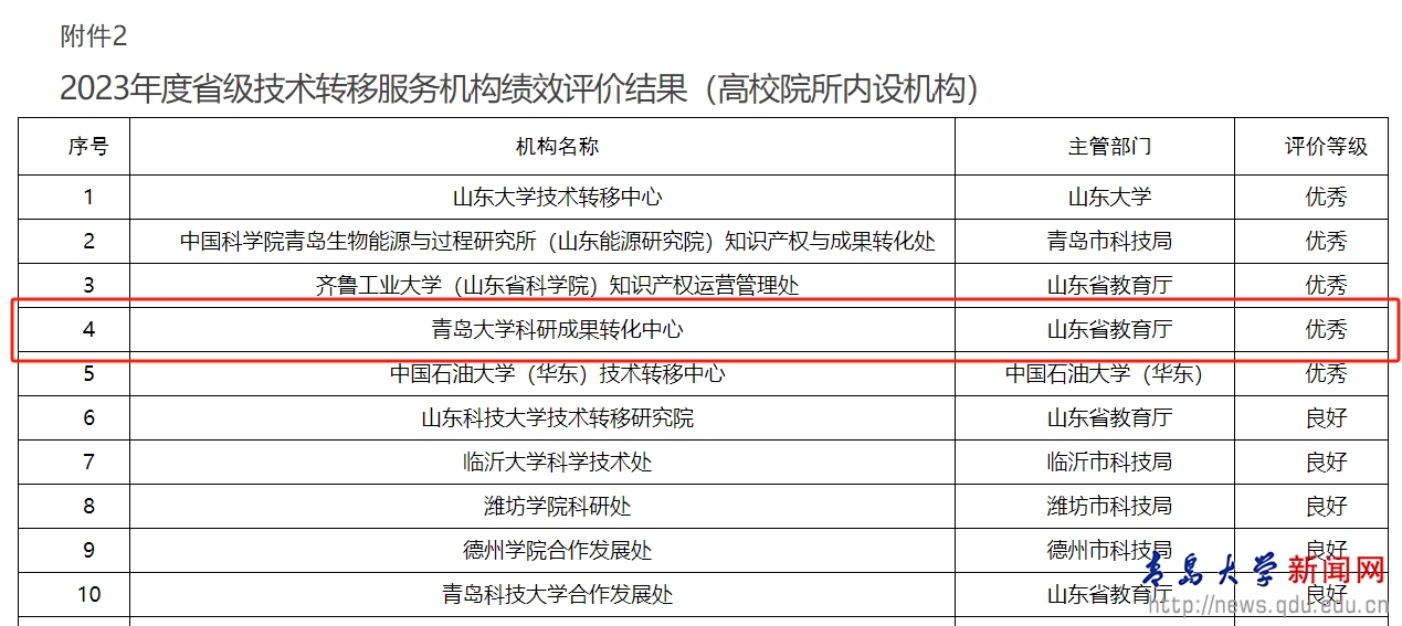 新聞網(wǎng)訊 近日,山東省科學(xué)技術(shù)廳最新公布的省級技術(shù)轉(zhuǎn)移服務(wù)機(jī)構(gòu)績效評價結(jié)果中,我校技術(shù)轉(zhuǎn)移服務(wù)機(jī)構(gòu)再次榮獲“優(yōu)秀”等級,在此次考核評價工作中,山東省共有39家高校院所技術(shù)轉(zhuǎn)移服務(wù)機(jī)構(gòu)納入考核,這是我??蒲谐晒D(zhuǎn)化中心連續(xù)第三年獲得此項榮譽(yù),被評為山東省技術(shù)轉(zhuǎn)移示范機(jī)構(gòu)。