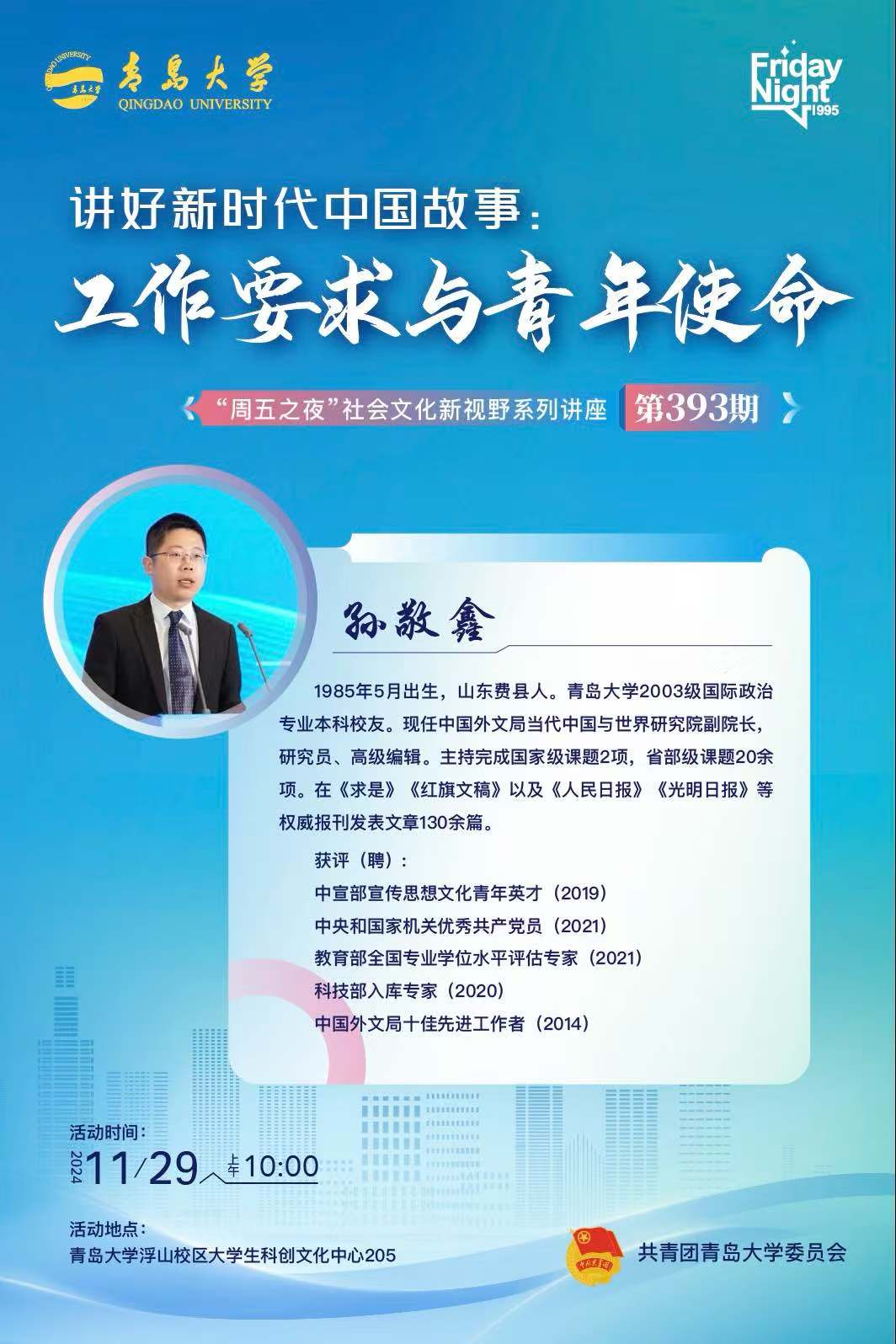 “周五之夜”第393期——講好新時代中國故事:工作要求與青年使命