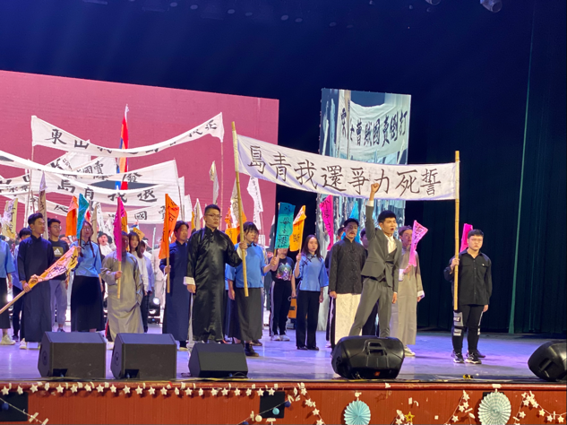 歌會中,各類舞蹈精彩紛呈:舞蹈《青蓮》、《Ponzona》演繹初夏溫柔,燃起青春焰火,帶給現場觀眾獨一無二的視覺盛宴;器樂表演《新編十面埋伏》、《若能綻放光芒》等獨出心裁,宛若林籟泉韻,令人心曠神怡;歌曲《在水一方》、《等你下課》、《追夢赤子心》等將青春的點點滴滴化作音符,用夢想編織旋律,匯成驪歌,余音繞梁;舞臺劇《紅色的孕育》訴說著革命先輩們的無悔人生,演繹出艱苦年代的大義凜然,彰顯出師院學子對黨史學習教育的創新與傳承。
