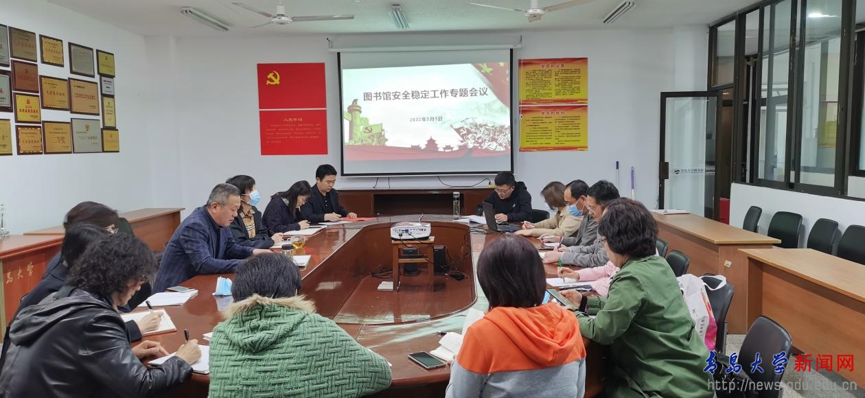 新聞網訊 5月5日下午,圖書館在會議室召開安全穩定工作專題會議,圖書館黨委書記李云海主持會議,館領導和部主任參加會議。