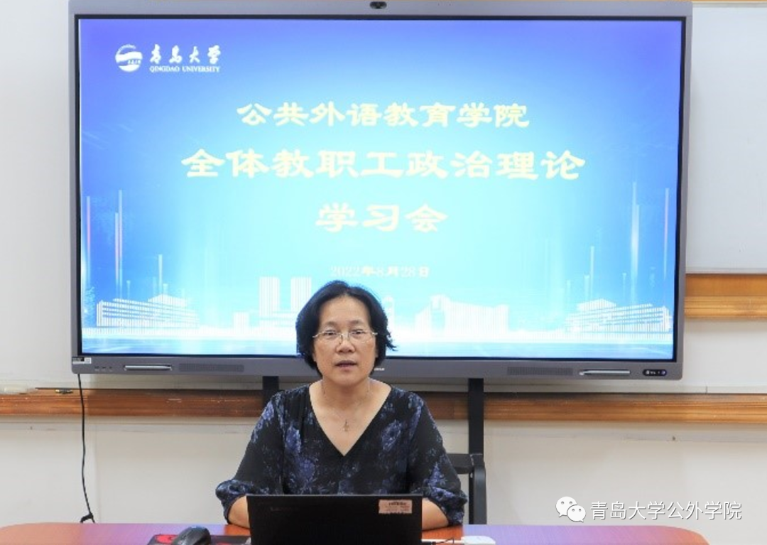學院召開了2022秋季學期期初工作會議,學院黨委書記劉海榮帶領教師們一起學習了《習近平給外文出版社的外國專家的回信》,強調了師德師風和意識形態工作,要求老師們教育引導學生講好中國故事,為促進中外文明交流互鑒做出貢獻。
