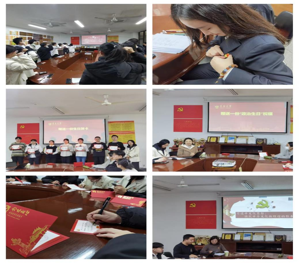 新聞網訊 12月12日,數學與統計學院在圖書館A311會議室舉行“銘初心 擔使命 再出發”黨員政治生日活動,依托“重溫一次入黨誓詞、佩戴一次黨徽、贈送一份政治生日賀卡、贈送一份政治生日祝福、許一個政治生日愿望、集中學習一次黨課”六個一活動,為12月份加入黨組織的黨員過“政治生日”。學院黨委書記劉琪、副書記魏小平出席活動,本科生黨支部和研究生黨支部的全體黨員參加。
