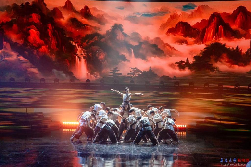 此次春晚由青島市委宣傳部、青島市文化和旅游局主辦,青島市廣播電視臺承辦,是春節(jié)期間青島市民最為期待的一場文化大餐。音樂學(xué)院在12月中旬接到青島市委宣傳部的邀請函之后便迅速召集相關(guān)人員進(jìn)行開會,確定了舞蹈系26名男生的演出陣容,并由舞蹈系系主任張琪玲與青年教師李斌作為主要帶隊、排練教師。在本學(xué)期期末考試結(jié)束之后,舞蹈系的26名男生也克服了天氣寒冷、生病等眾多的困難,承擔(dān)了男子群舞《山海》、歌曲《誓用生命迎接勝利》以及歌曲《酒來》的伴舞任務(wù),在舞臺上完美展現(xiàn)了青大舞蹈學(xué)子的風(fēng)采,受到了節(jié)目組的一致好評。