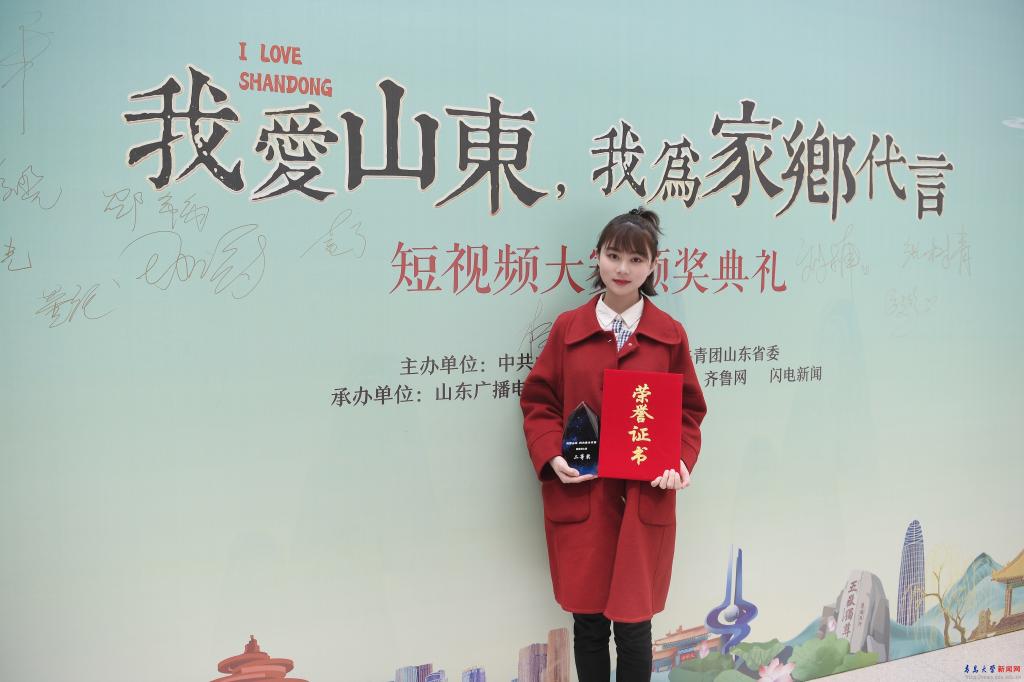 新聞網(wǎng)訊 4月28日,由山東省委宣傳部、共青團(tuán)山東省委聯(lián)合主辦,山東廣播電視臺(tái)融媒體資訊中心、齊魯網(wǎng)·閃電新聞承辦的“我愛(ài)山東,我為家鄉(xiāng)代言”短視頻大賽頒獎(jiǎng)典禮在濟(jì)南舉辦,文學(xué)與新聞傳播學(xué)院2019級(jí)研究生劉楠獲得二等獎(jiǎng)并現(xiàn)場(chǎng)領(lǐng)獎(jiǎng)。